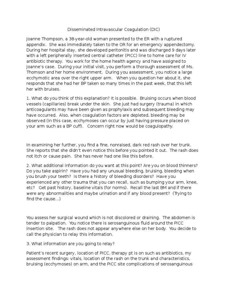 7. Are the patients presenting S/S consistent with DIC? Why or why not? Yes, she