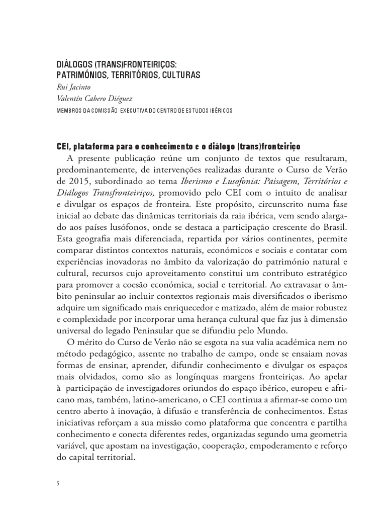 O dilogo interdisciplinar mas, tambm, entre territrios, pessoas e instituies, d aqum e d alm-fronteiras, das mais prximas s mais longnquas,