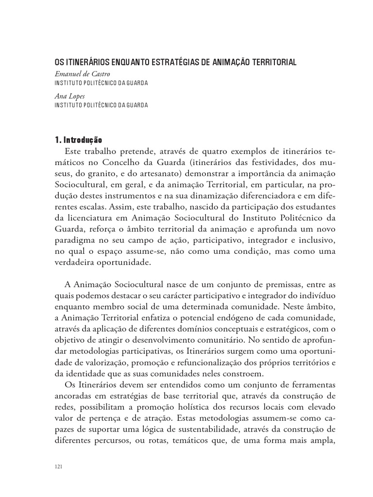 Sociocultural, emgeral, e da animao Territorial, em particular, na produo destes instrumentos e na sua dinamizao diferenciadora e em diferentes escalas. Assim, este trabalho, nascido da participao dos estudantes