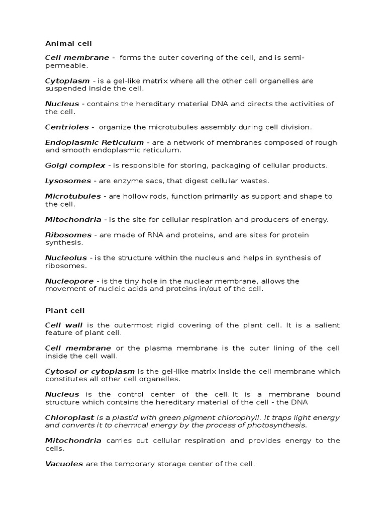 Cell membrane - forms the outer covering of the cell, and is semipermeable.