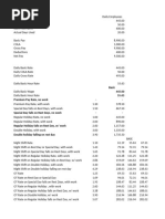 The document appears to be a payroll record listing the basic daily wage as 1800, the overtime rate as 2300, and the total gross salary as 2300 including 60 regular hours paid at the basic rate and 7.5 overtime hours paid at the increased overtime rate of 74.19355 per hour, for a total of 11.25 hours worked.