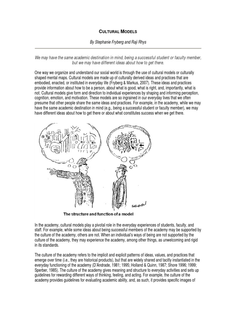In the academy, cultural models play a pivotal role in the everyday experiences of students, faculty, and