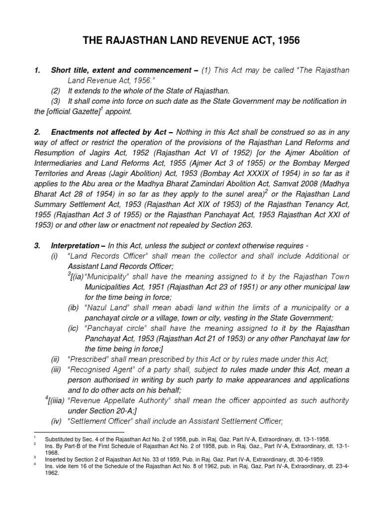 Bharat Act 28 of 1954) in so far as they apply to the sunel area) 2 or the Rajasthan Land