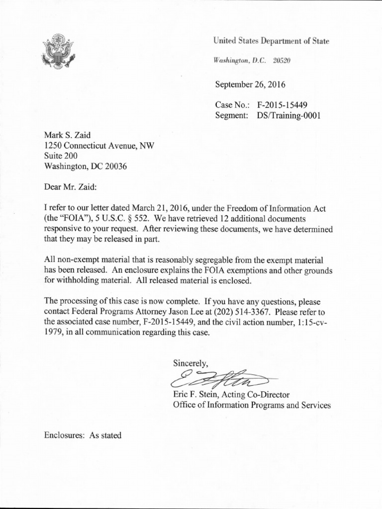 Release on September 27 of first batch of State Department documents pertaining to security training taken by Secretary Hillary Clinton and her top aides.
