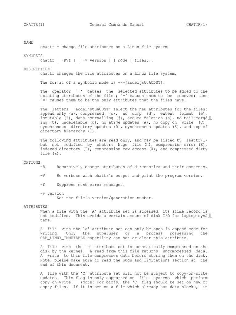 ing (t), undeletable (u), no atime updates (A), no copy on write (C),