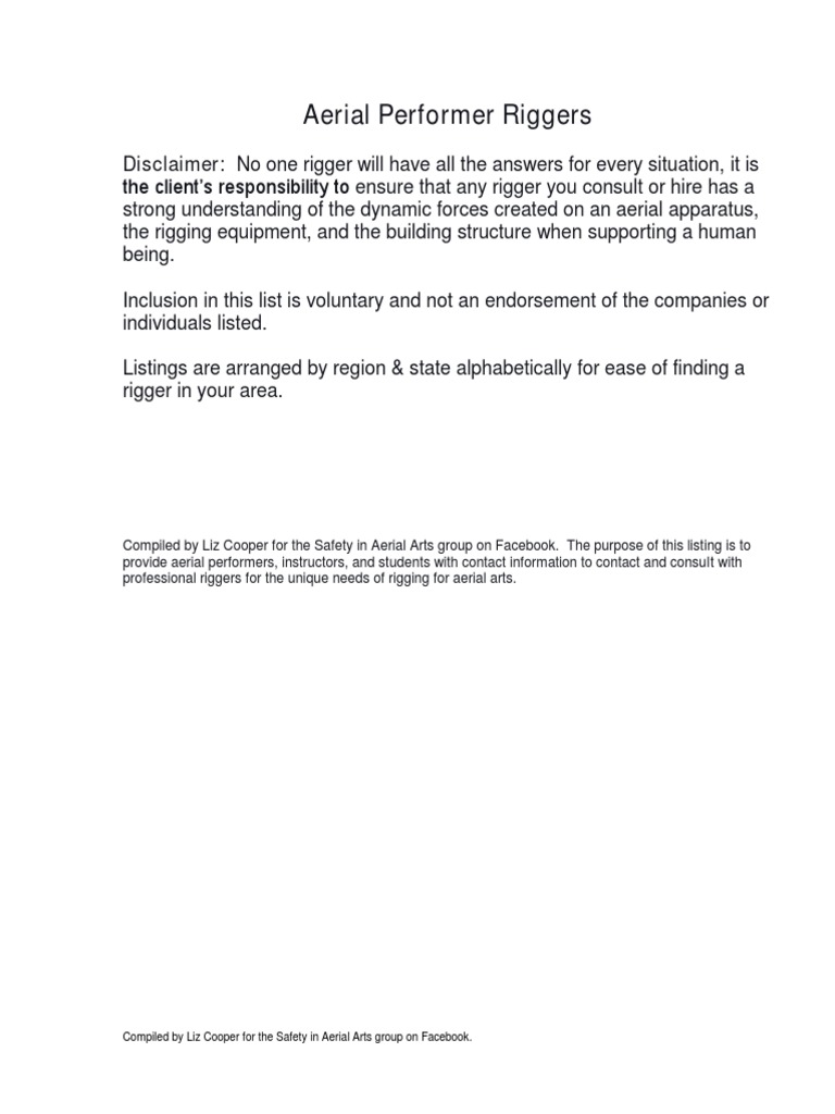 Compiled by Liz Cooper for the Safety in Aerial Arts group on Facebook. The purpose of this listing is to