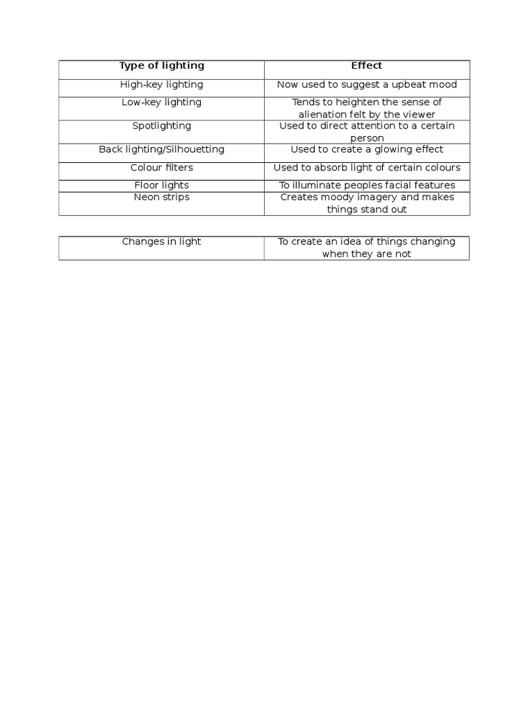 Type of lighting