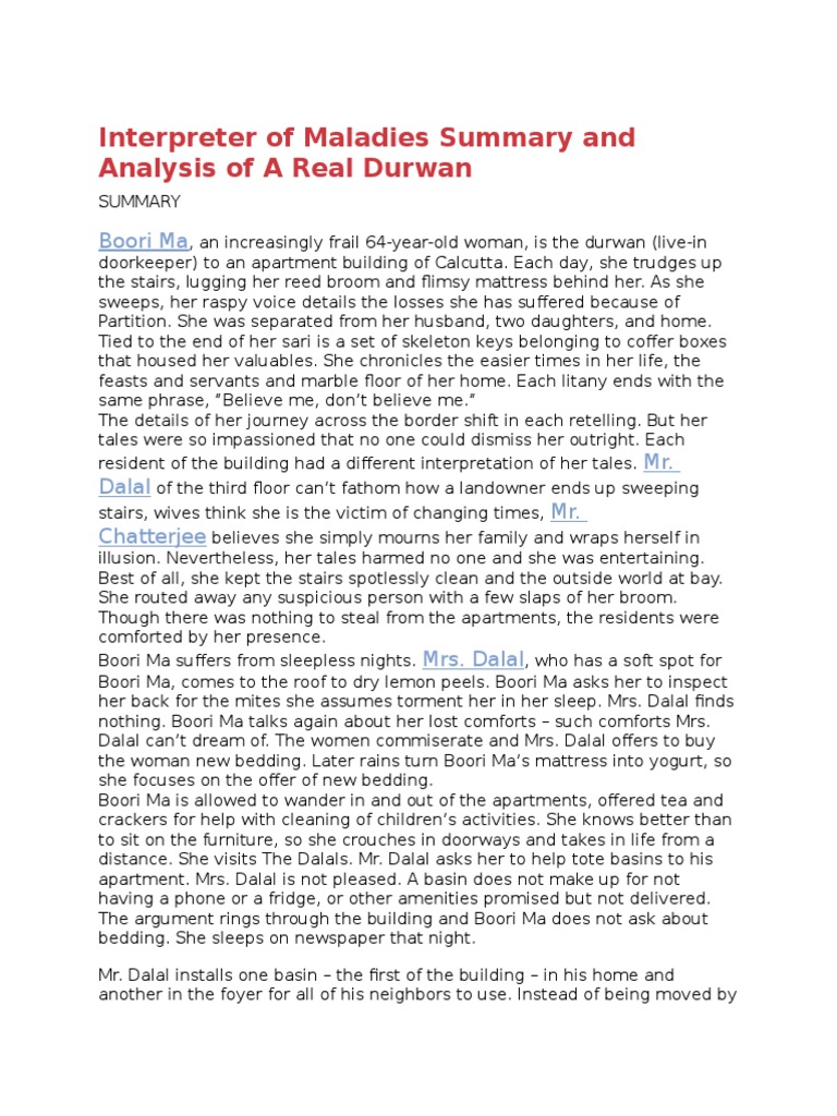 SectionInterpreter of Maladies Summary and Analysis Buy