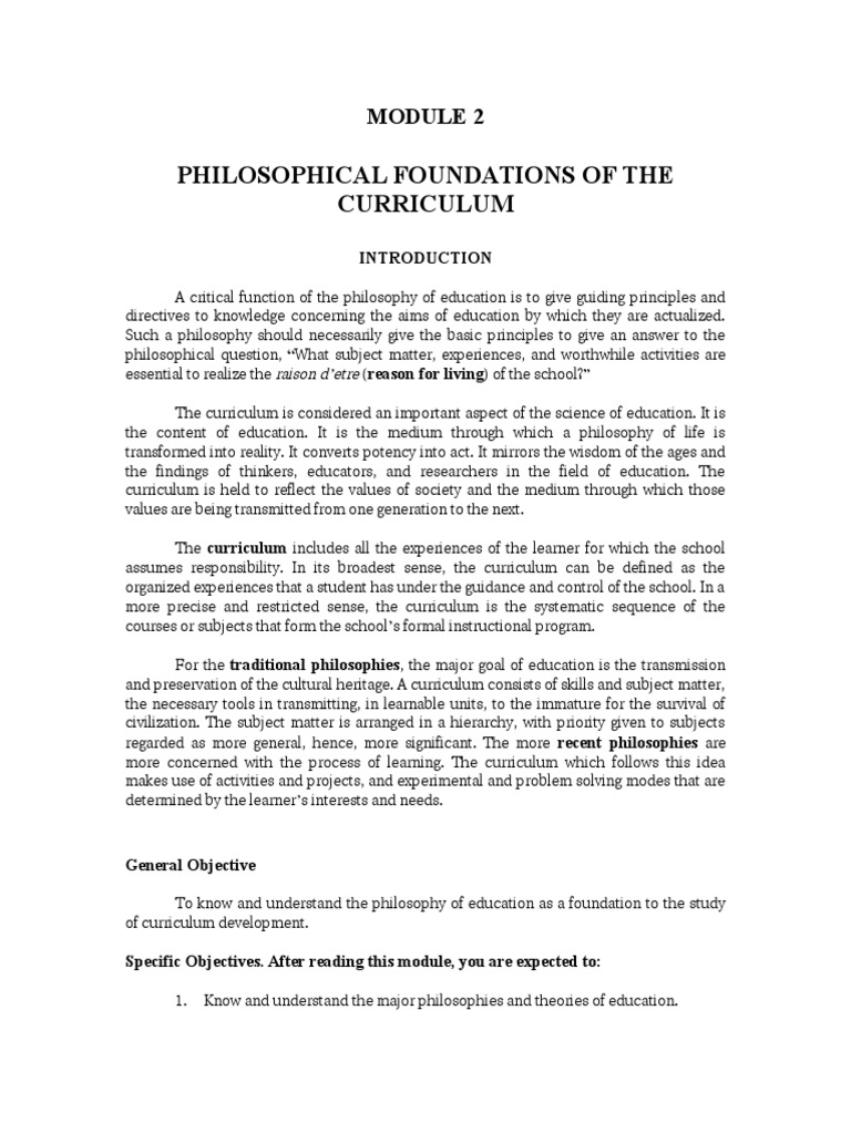 To know and understand the philosophy of education as a foundation to the study