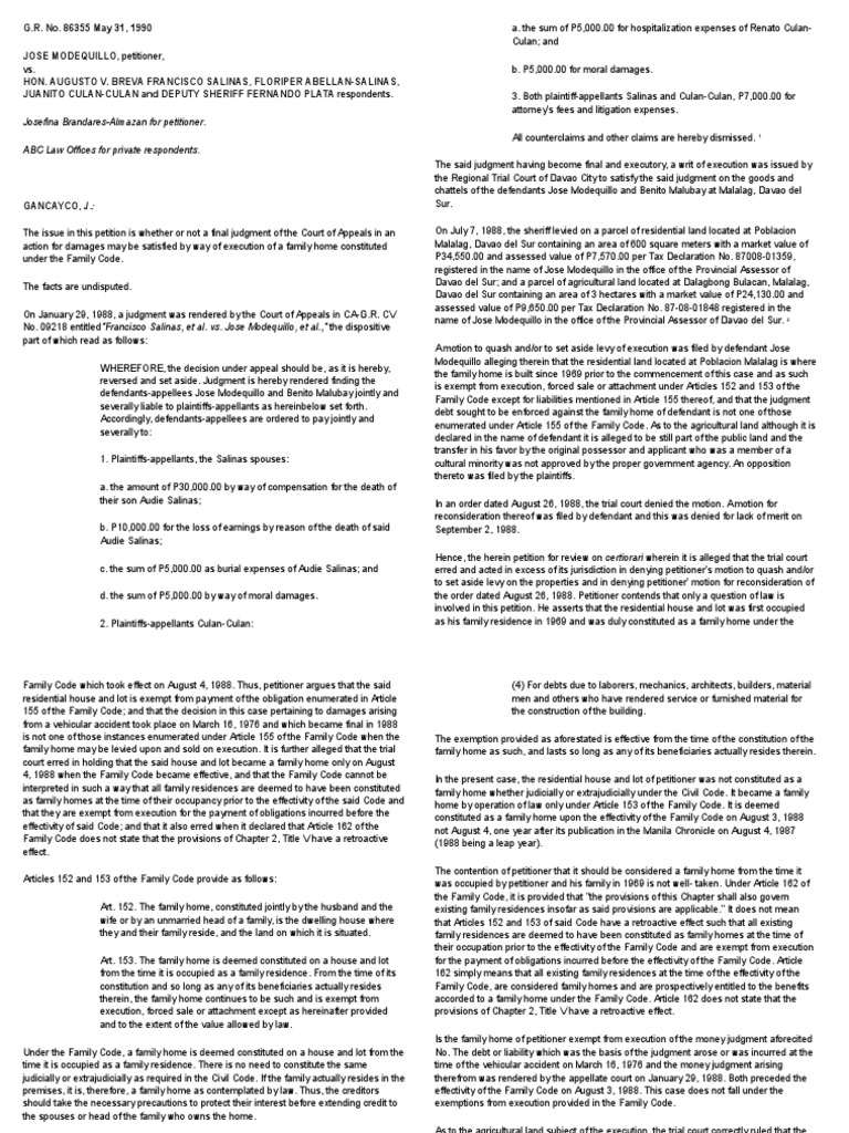 No. 09218 entitled"Francisco Salinas, et al. vs. Jose Modequillo, et al.," the dispositive
