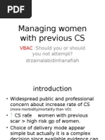 intrapartum care of pregnant women who have had previous caesarean delivery, with the options for
