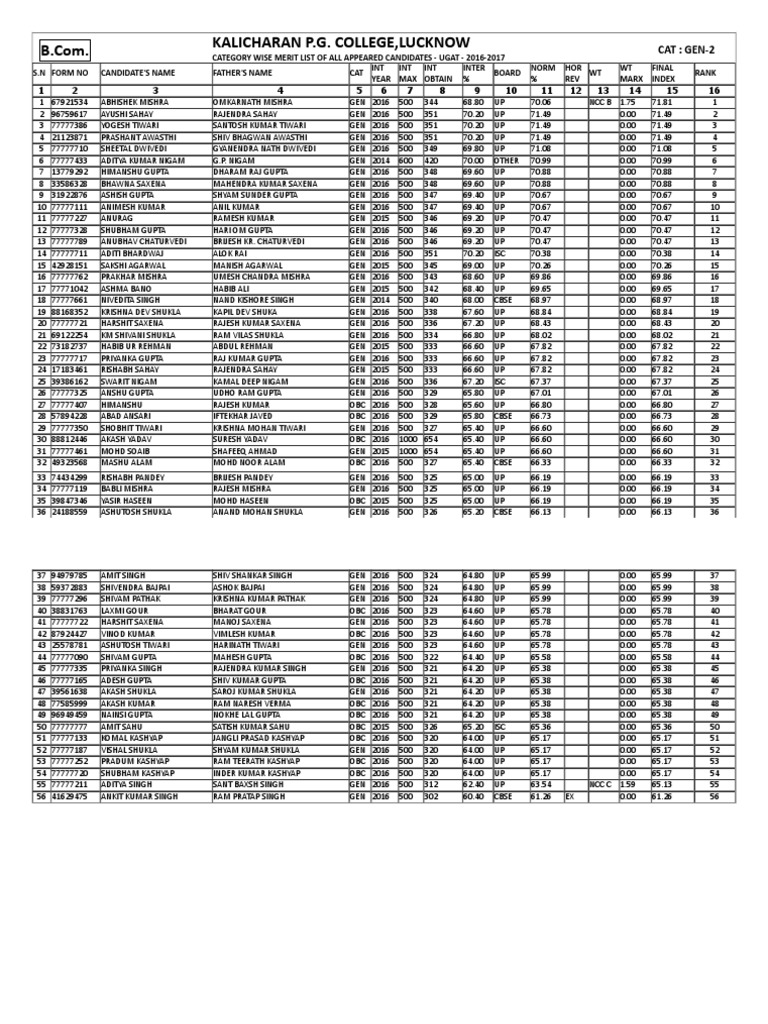 CATEGORYWISEMERITLISTOFALLAPPEAREDCANDIDATESUGAT20162017