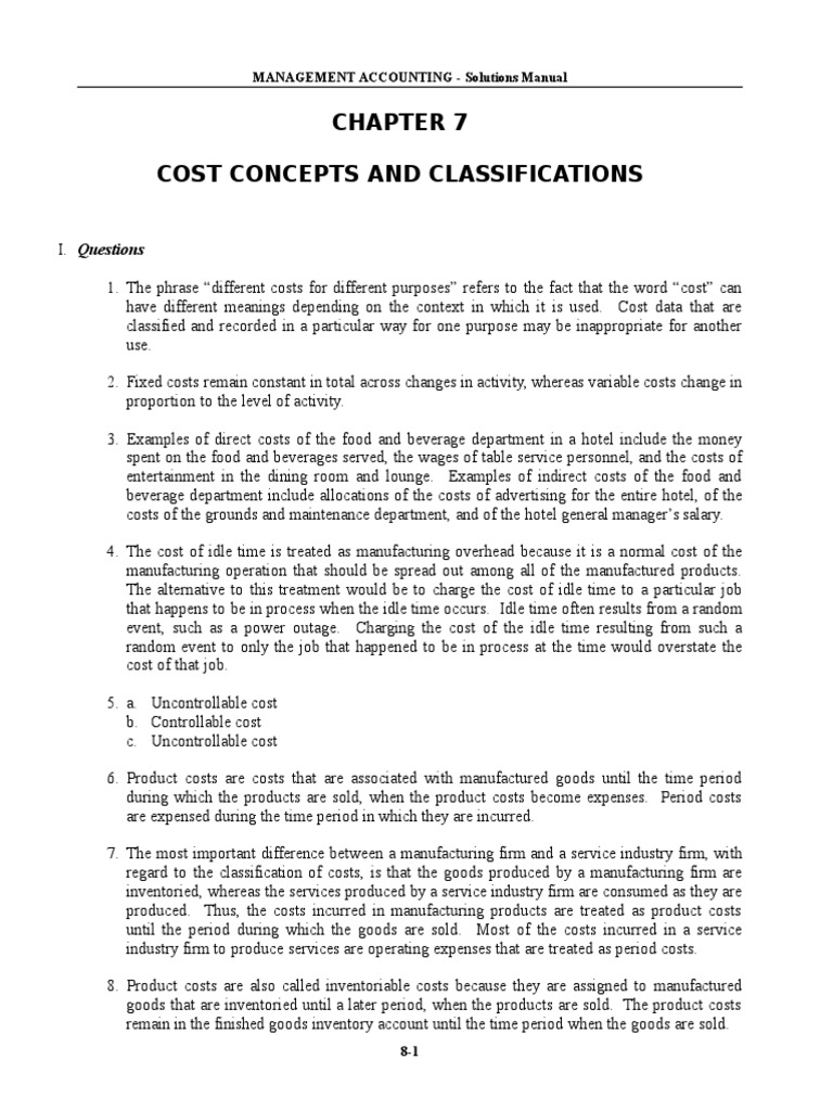 Chapter 8 Cost Concepts and Classifications