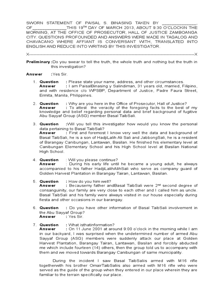 SWORN STATEMENT OF PAISAL S.