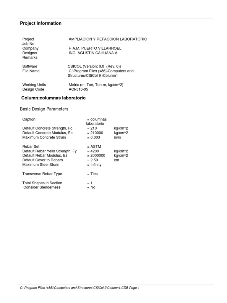 C:\Program Files (x86)\Computers and Structures\CSiCol 9\Column1.CDB Page 1