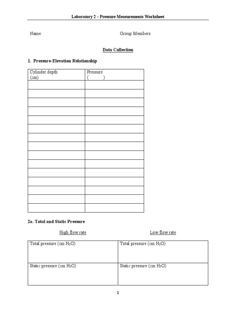 manometer data for each flowrate, calculate the total pressure and the static pressure in