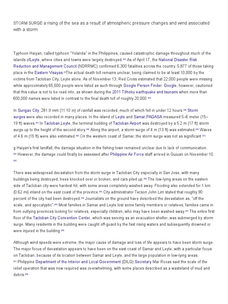on Tacloban, because of its location between Samar and Leyte, and the large population in low-lying areas.
