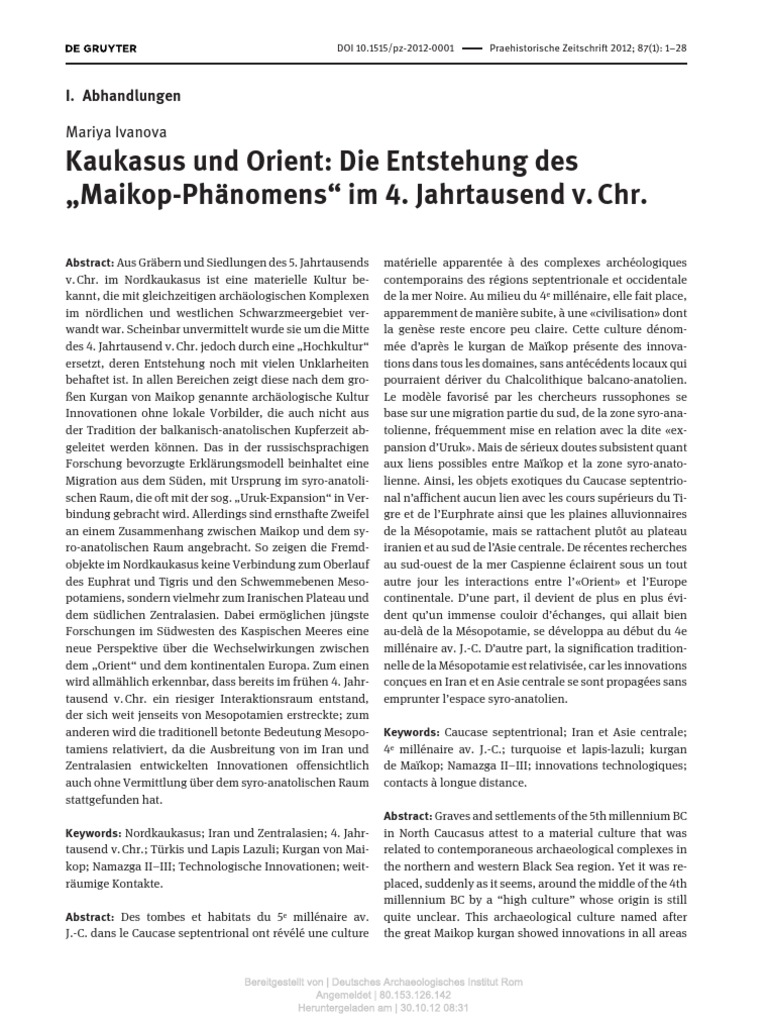 Archaeological links between the Maikop culture and Central Asia-Iran