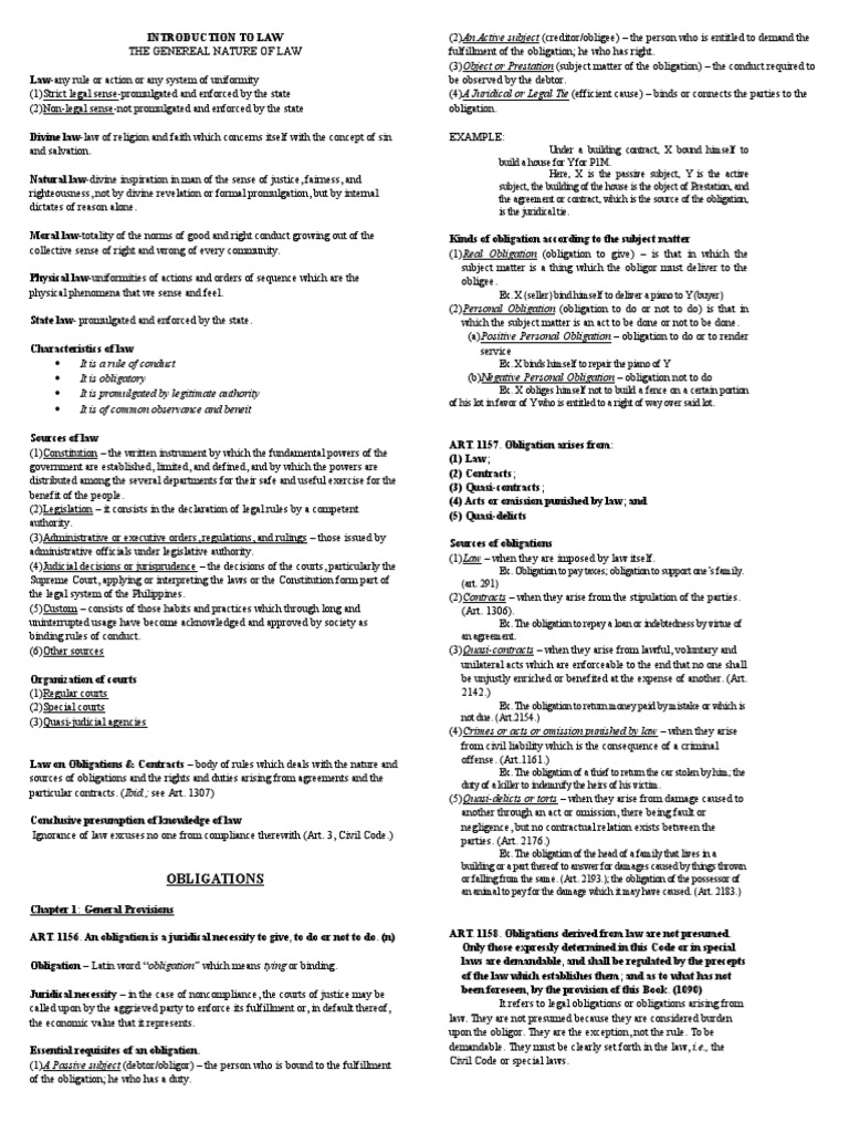 Law on Obligations & Contracts body of rules which deals with the nature and