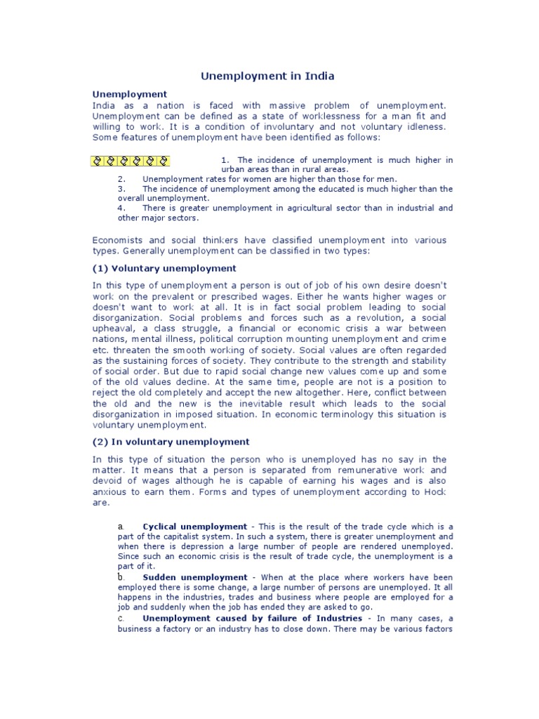 floods etc. The remedial measures for reducing unemployment may lay greater