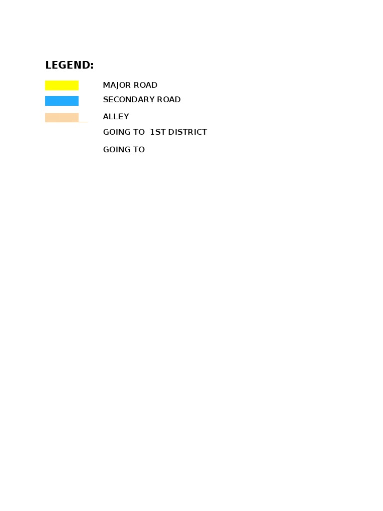 This map shows roads in an area, including major roads, secondary roads, and alleys. It indicates directions to the 1st District and to Daraga using arrows. The legend provides labels for different road types shown on the map.