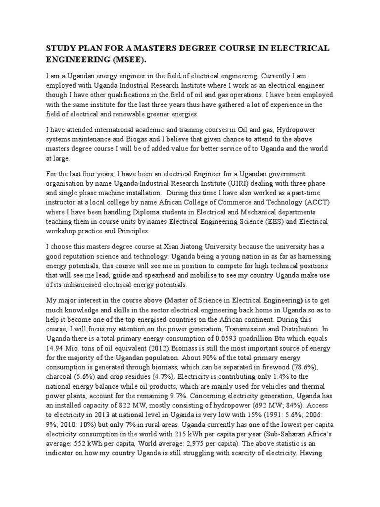 of Electrical Engineering, I will help Uganda deliver sustainable environmental friendly form