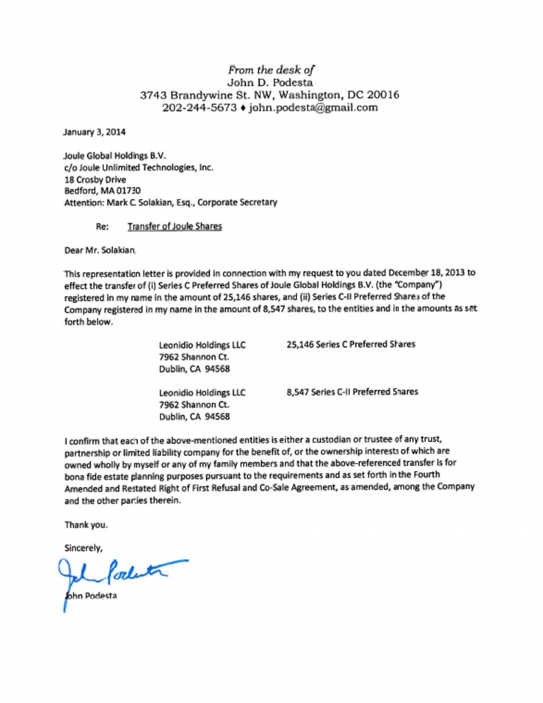 Re: Transfer of Joule Shares