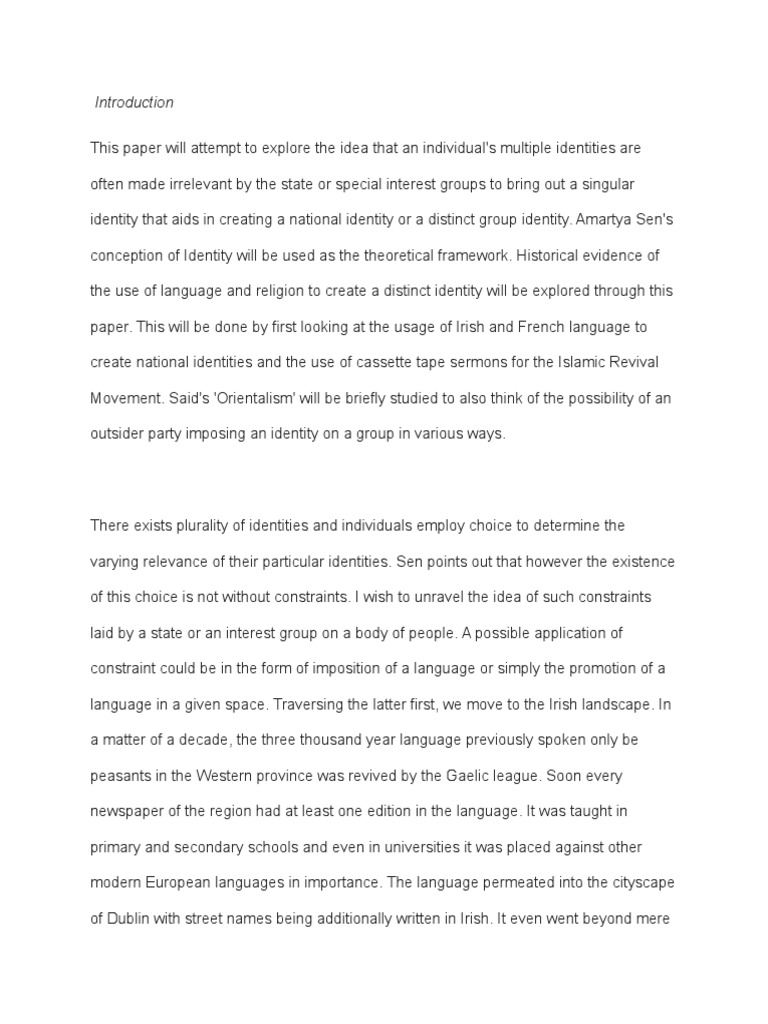 This paper will attempt to explore the idea that an individual's multiple identities are