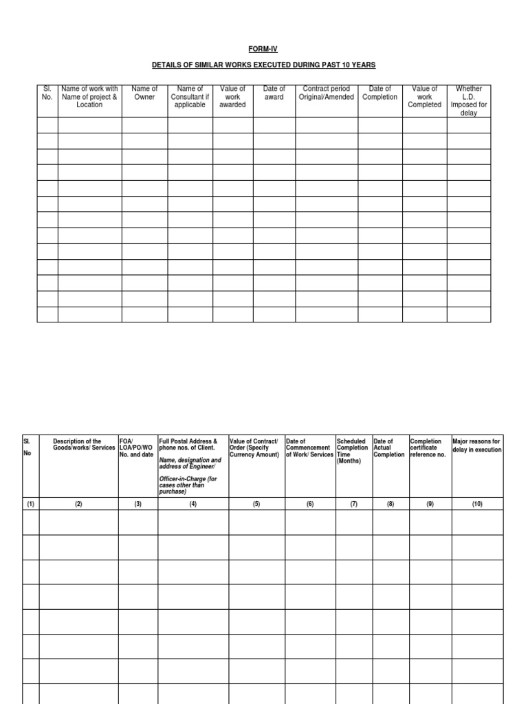 DETAILS OF SIMILAR WORKS EXECUTED DURING PAST 10 YEARS