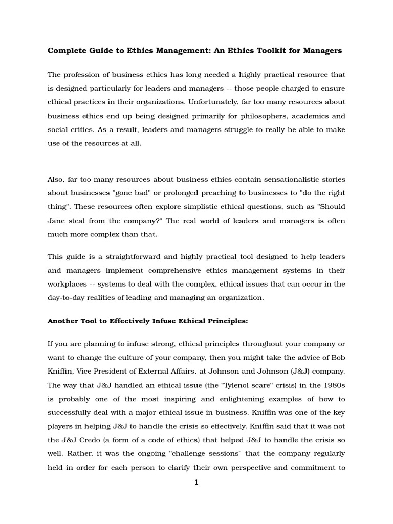 ethical practices in their organizations. Unfortunately, far too many resources about