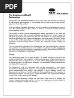 completing this Pre-employment health declaration form and returning it to the principal (for schoolbased staff), Regional Director (for principals/regional teaching service employees) or Corporate