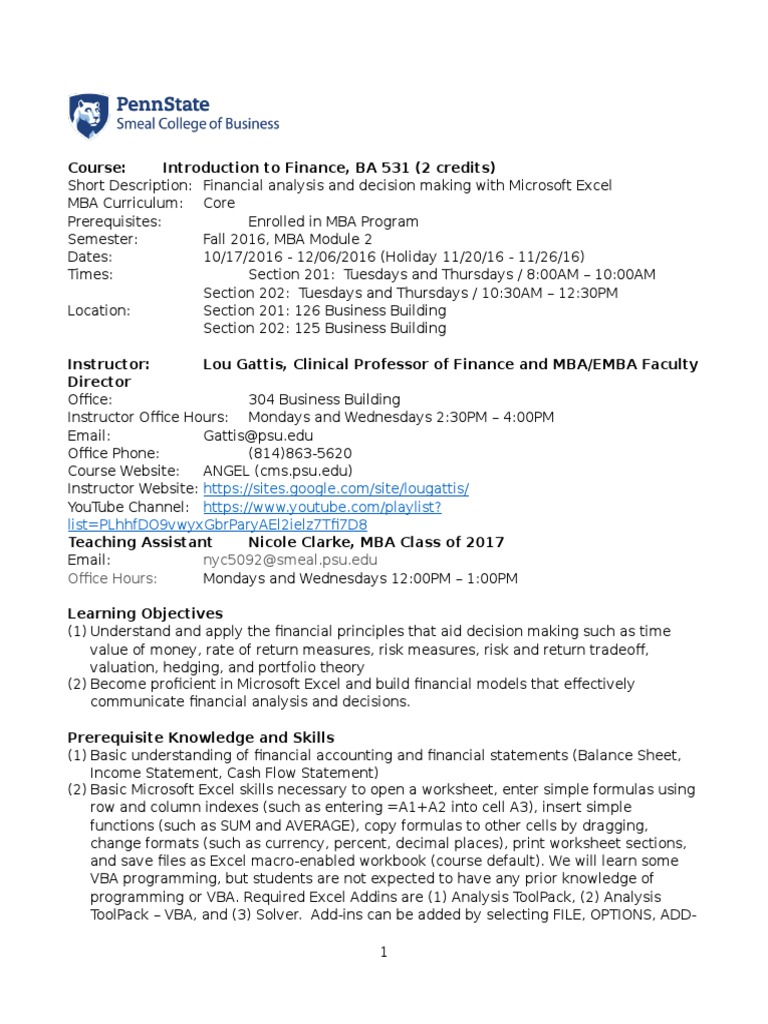 Short Description: Financial analysis and decision making with Microsoft Excel
