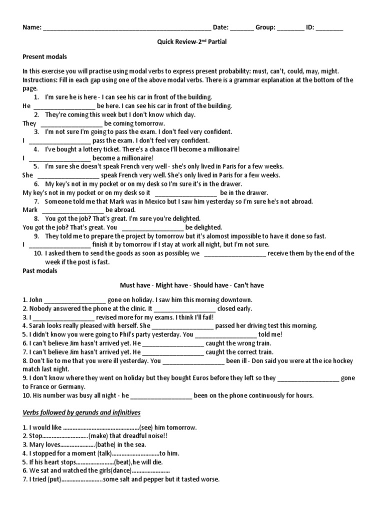 Instructions: Fill in each gap using one of the above modal verbs. There is a grammar explanation at the bottom of the