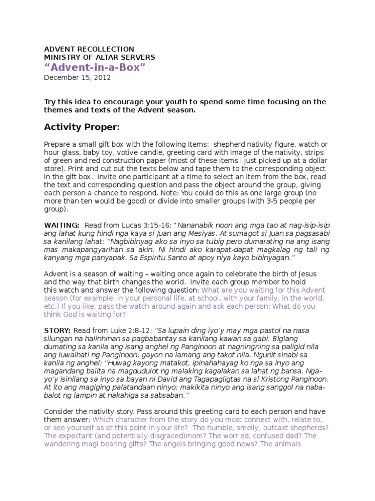 WAITING: Read from Lucas 3:15-16: Nananabik noon ang mga tao at nag-isip-isip
