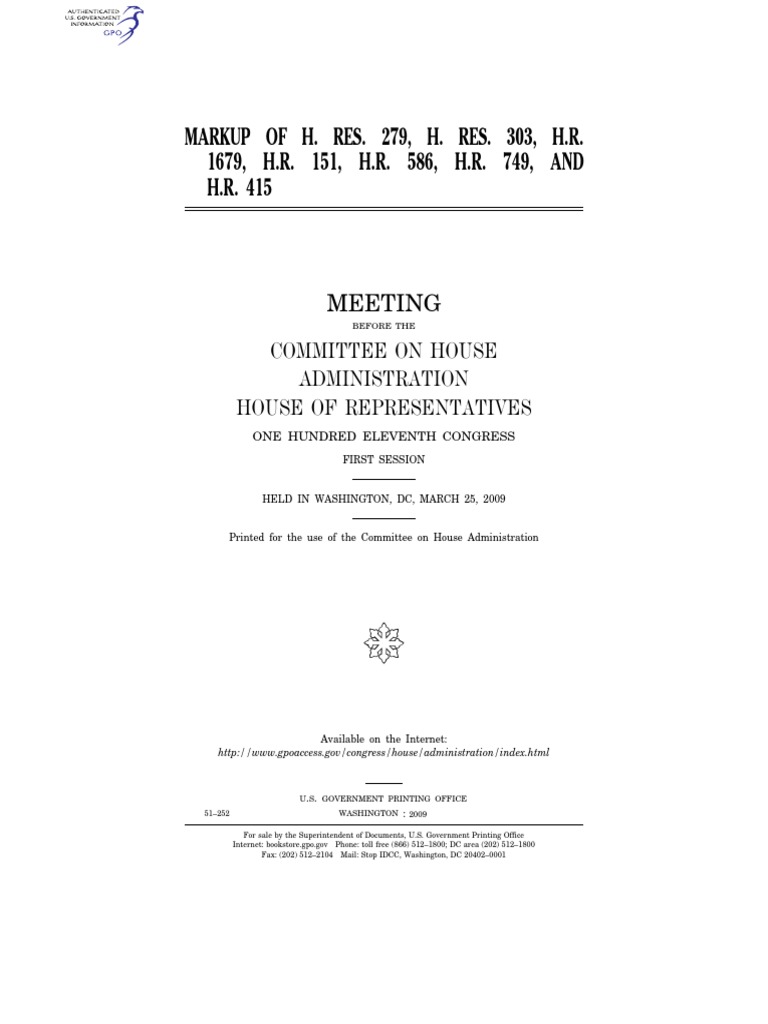 House Hearing, 111TH Congress - Markup of H. Res. 279, H. Res. 303, H.R. 1679, H.R. 151, H.R. 586, H.R. 749, and H.R. 415