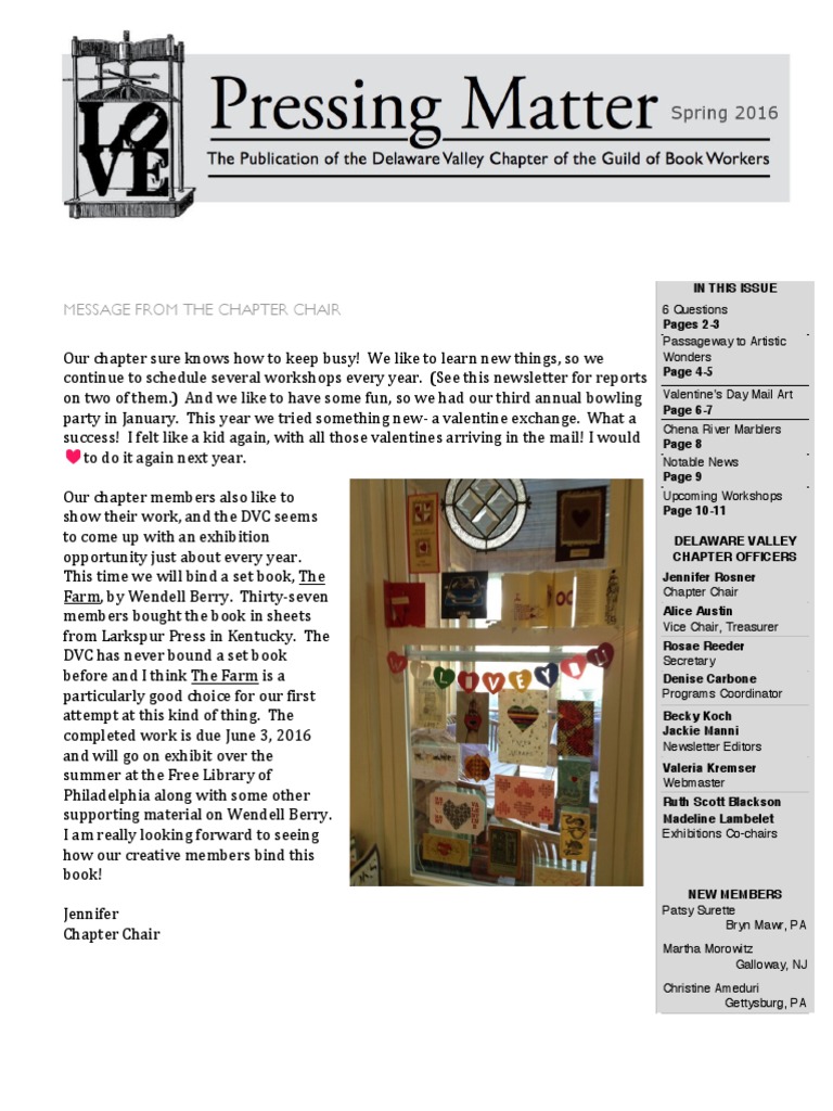 Delaware Valley Bookworkers Spring Newsletter