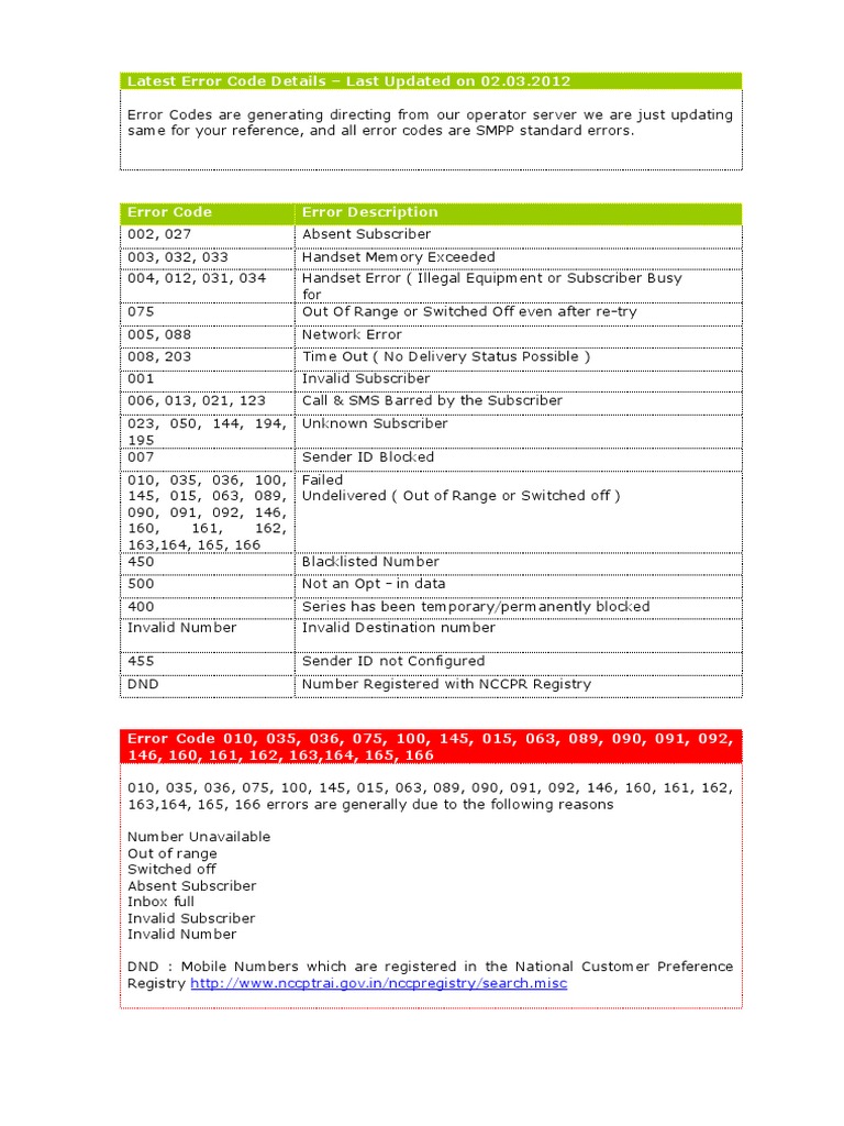 Latest Error Code Details Last Updated on 02.03.