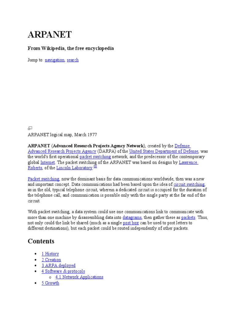 global Internet. The packet switching of the ARPANET was based on designs by Lawrence