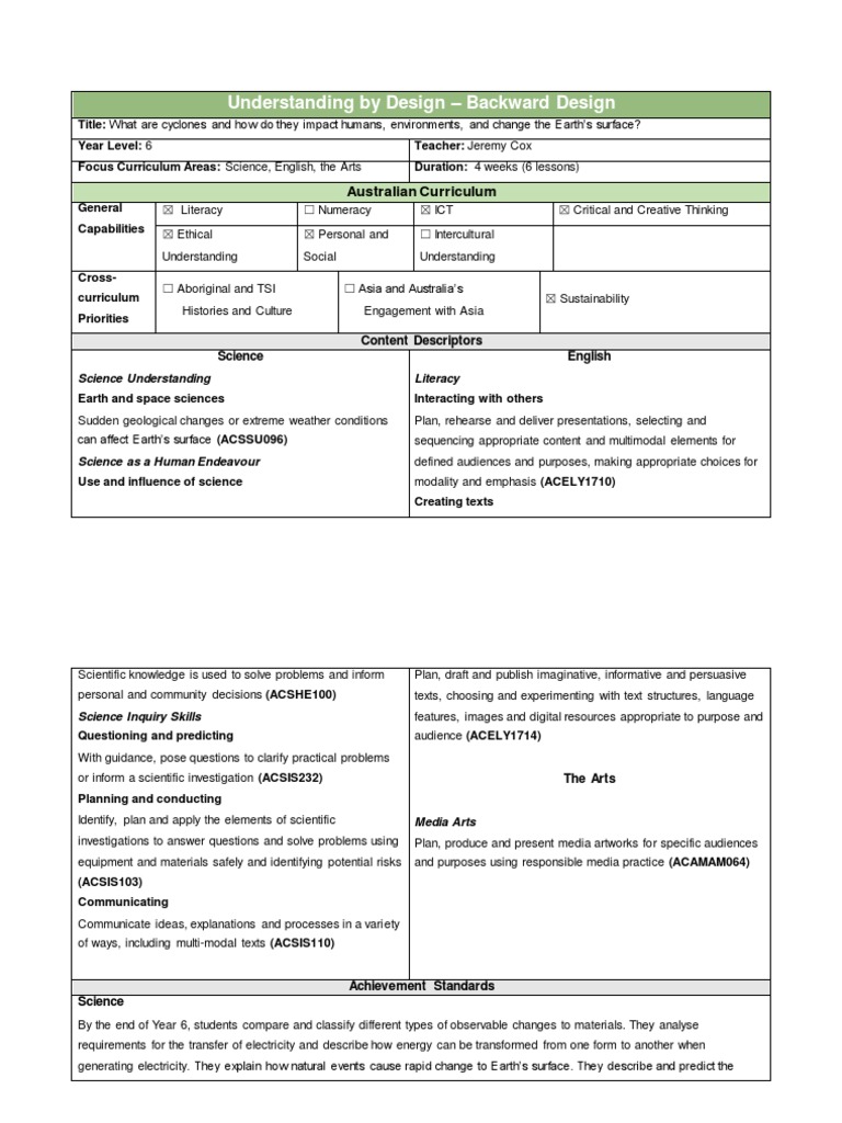 Understanding by Design Backward Design