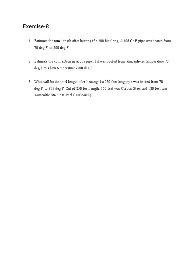 1. Estimate the total length after heating if a 200 feet long, A 106 Gr.B pipe was heated from