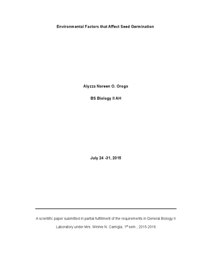 seed must first be viable (alive) (Stern, 2011). When conditions are favorable for