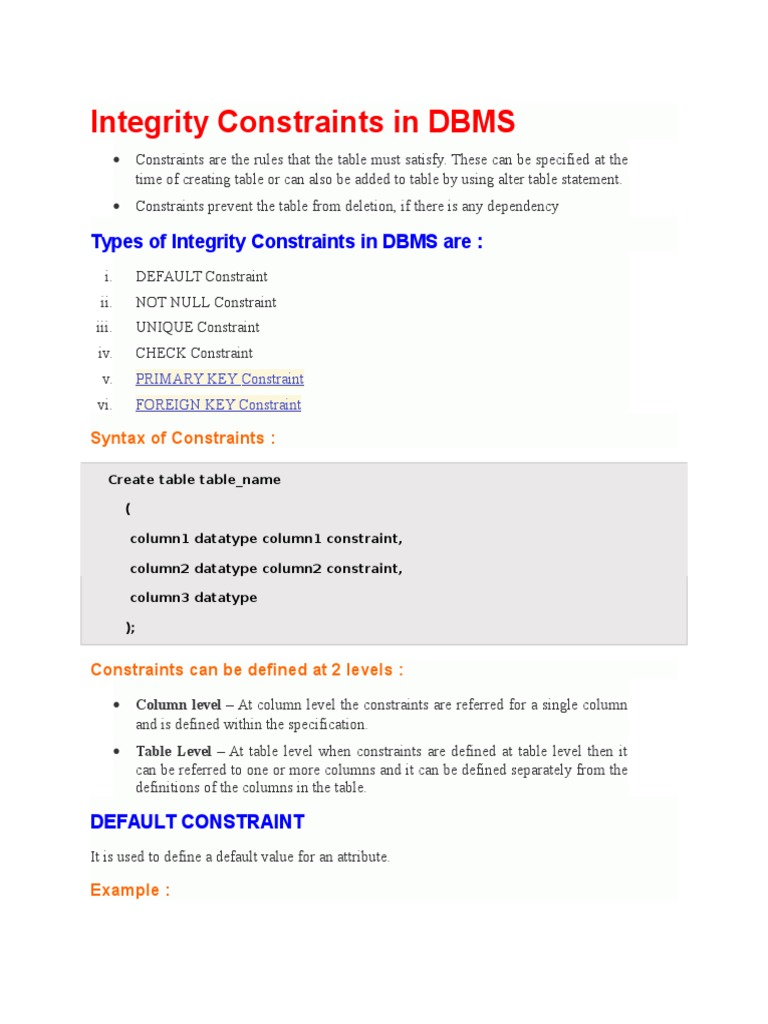 Integrity Constraints in DBMS