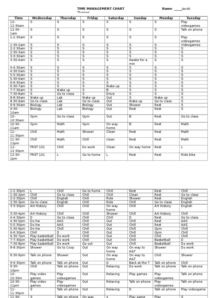 TIME MANAGEMENT CHART