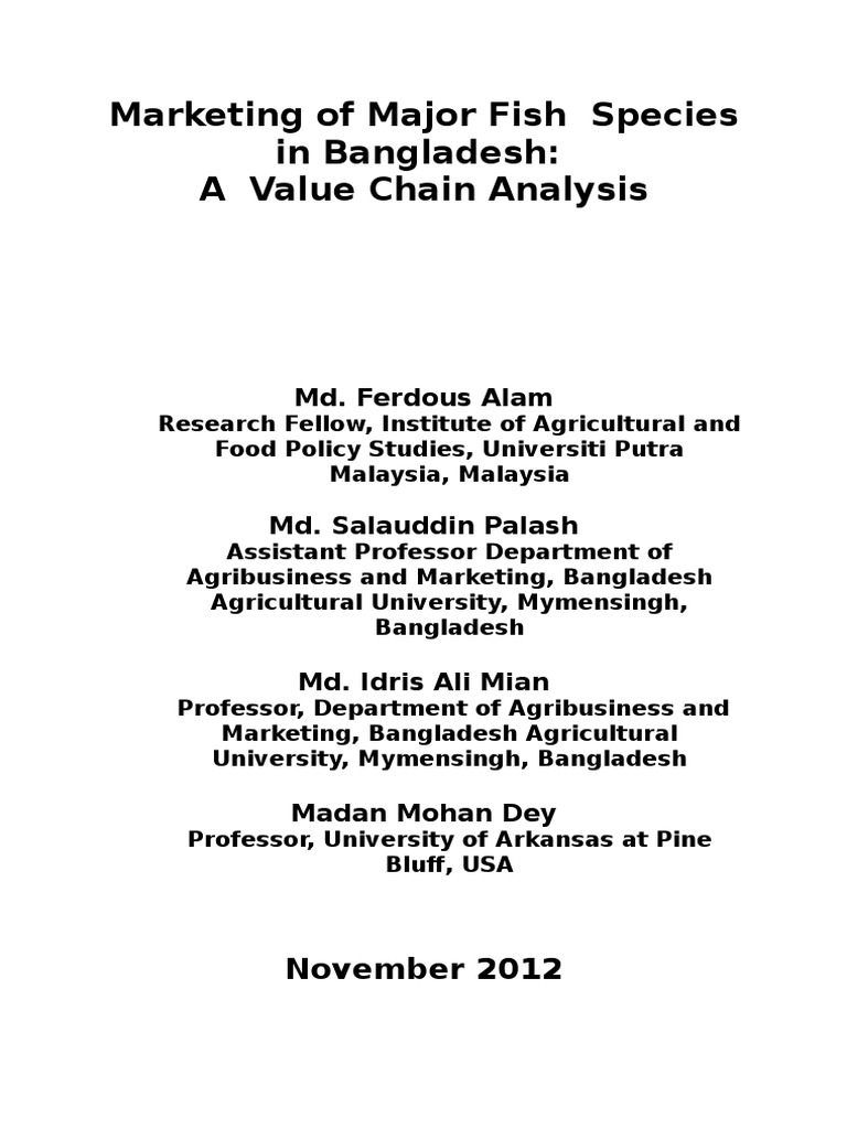 Islam, M. S., Akteruzzaman, M., and Ahmed, N. 2006. Study on marketing and value chain
