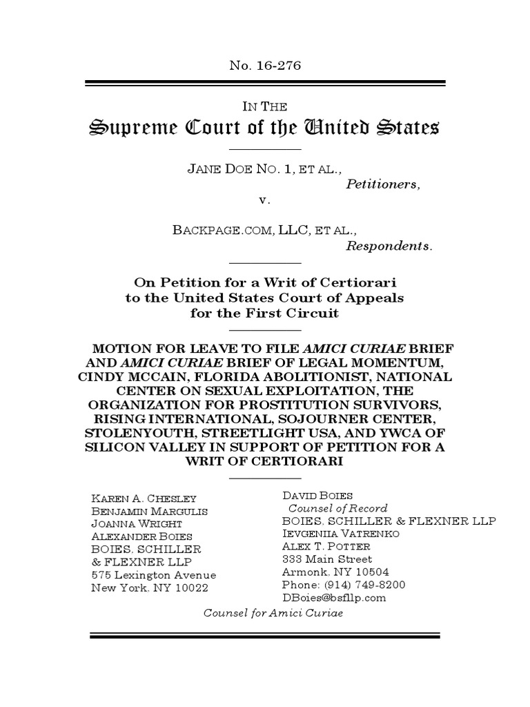 Amicus Brief in Jane Doe Et Al. v. Backpage - Com Et Al.