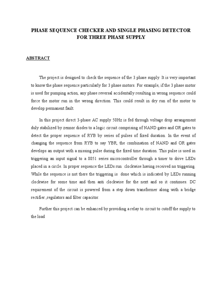 PHASE SEQUENCE CHECKER AND SINGLE PHASING DETECTOR