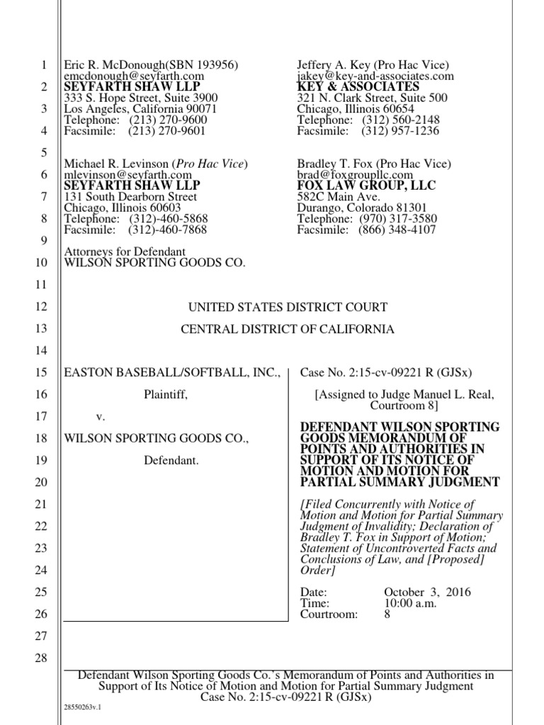 Defendant Wilson Sporting Goods Co.s Memorandum of Points and Authorities in