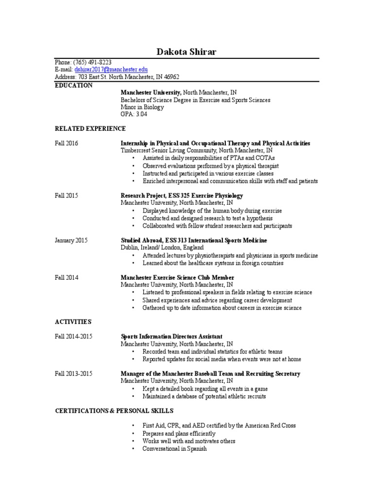 Bachelors of Science Degree in Exercise and Sports Sciences