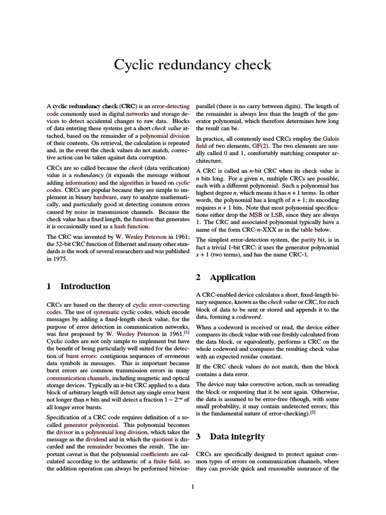 [39] Geremia, Patrick (April 1999). Cyclic redundancy
