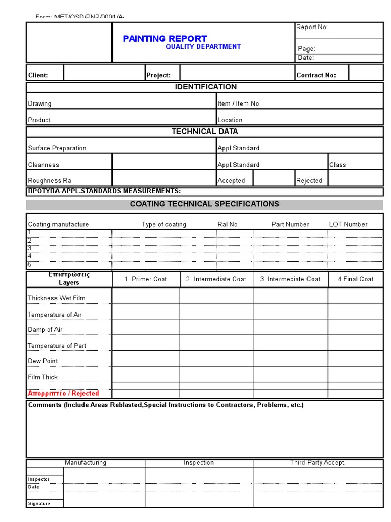 COATING TECHNICAL SPECIFICATIONS